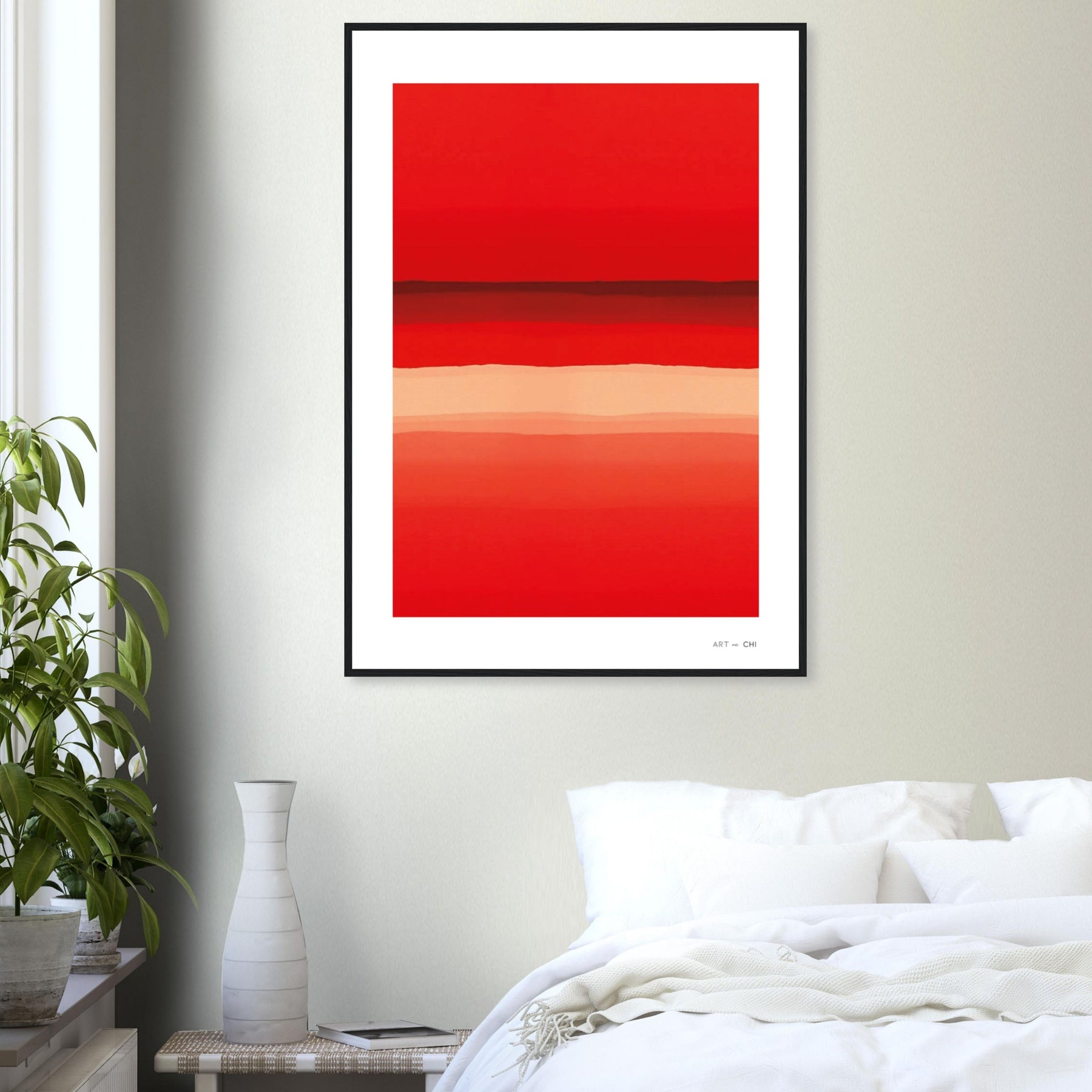 Feel the pulse of the Fire Element . This abstract poster, layered in reds —from carmine to coral—brings passion, visibility, and dynamism to your space.