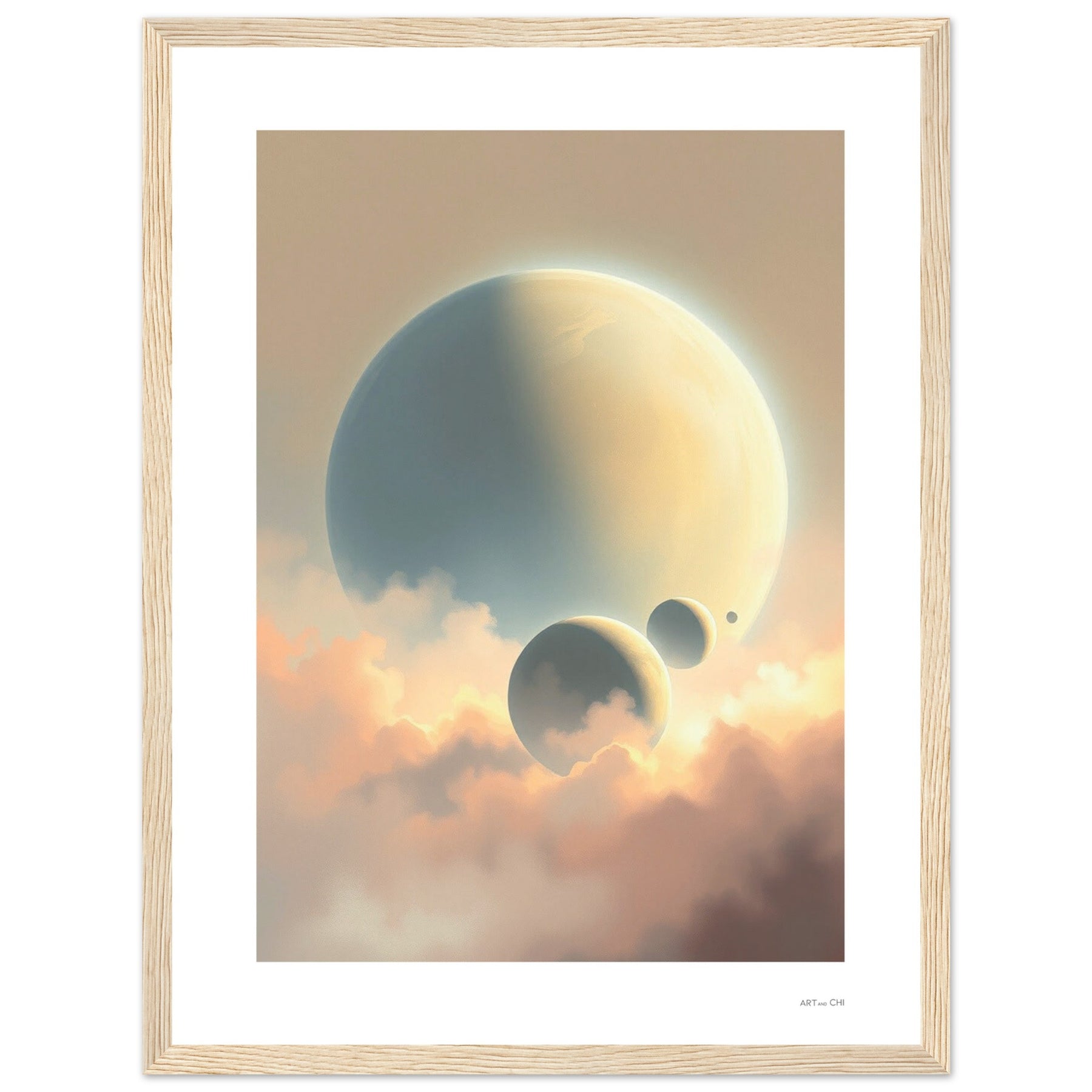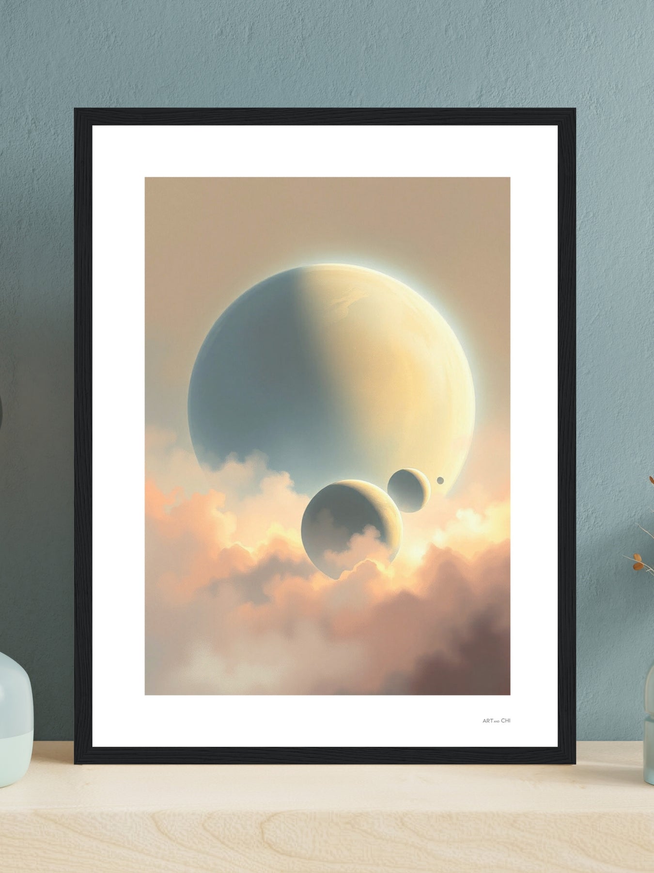 Lámina poster premium "Esferas Celestes"arte minimalista espiritual, póster decorativo Feng Shui para salón, decoración oficina, despacho, regalo original.