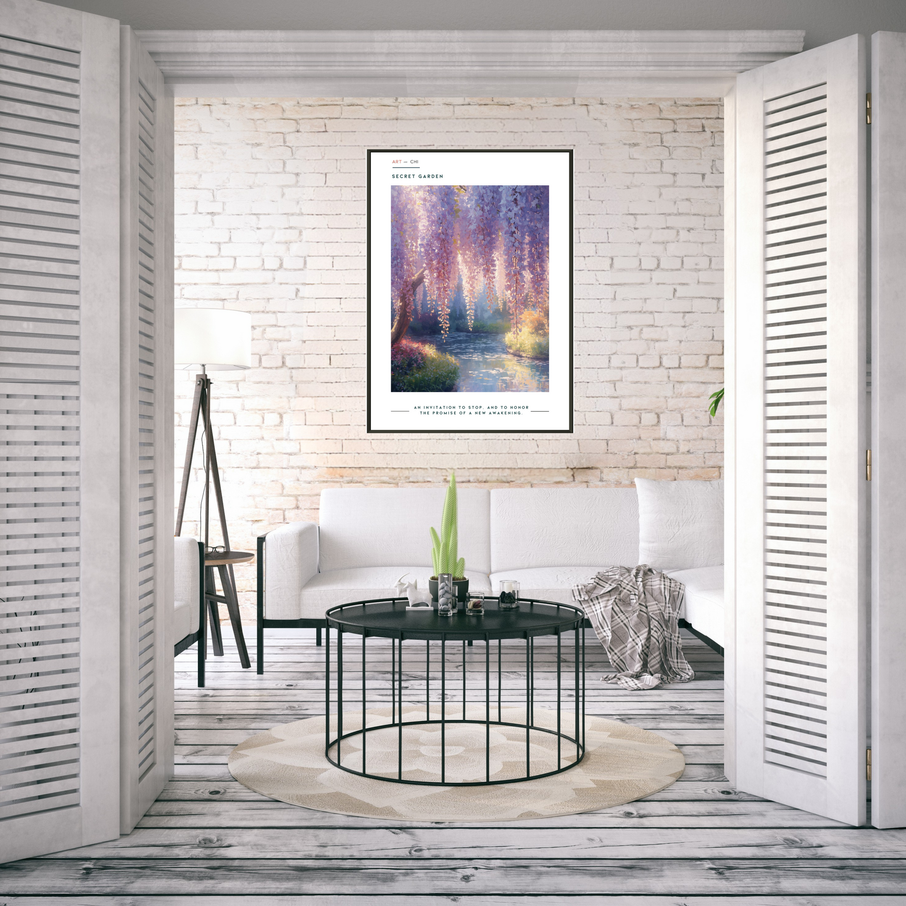 Secret Garden es una lámina botánica inspirada en los jardines japoneses en floración. Con delicadas cascadas de tonos lila y pinceladas impresionistas contemporáneas, esta obra transmite serenidad y ensoñación, con la calidad premium que nos caracteriza: materiales sostenibles y distribución ecológica